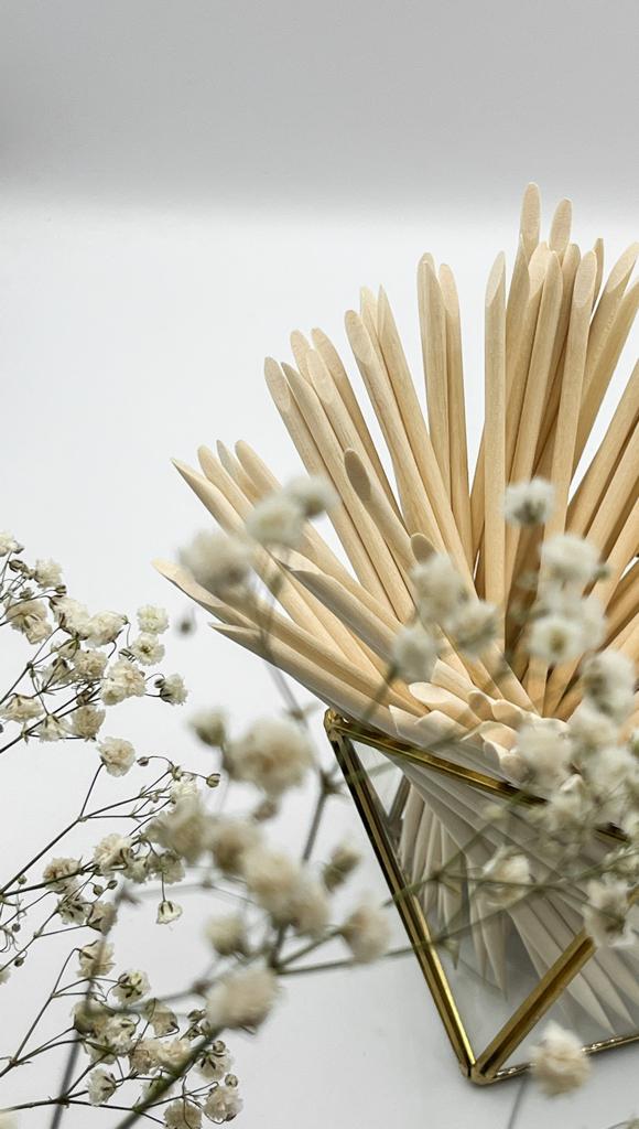 Sunt 100 de bucati in set si sunt confectionate din lemn de portocal avand 2 capete, unul ascutit folosit pentru stergerea surplusului de material din falduri, pentru realizarea diferitelor design-uri, etc si celalalt decupat oblic pentru caratarea eficienta a cuticulelor